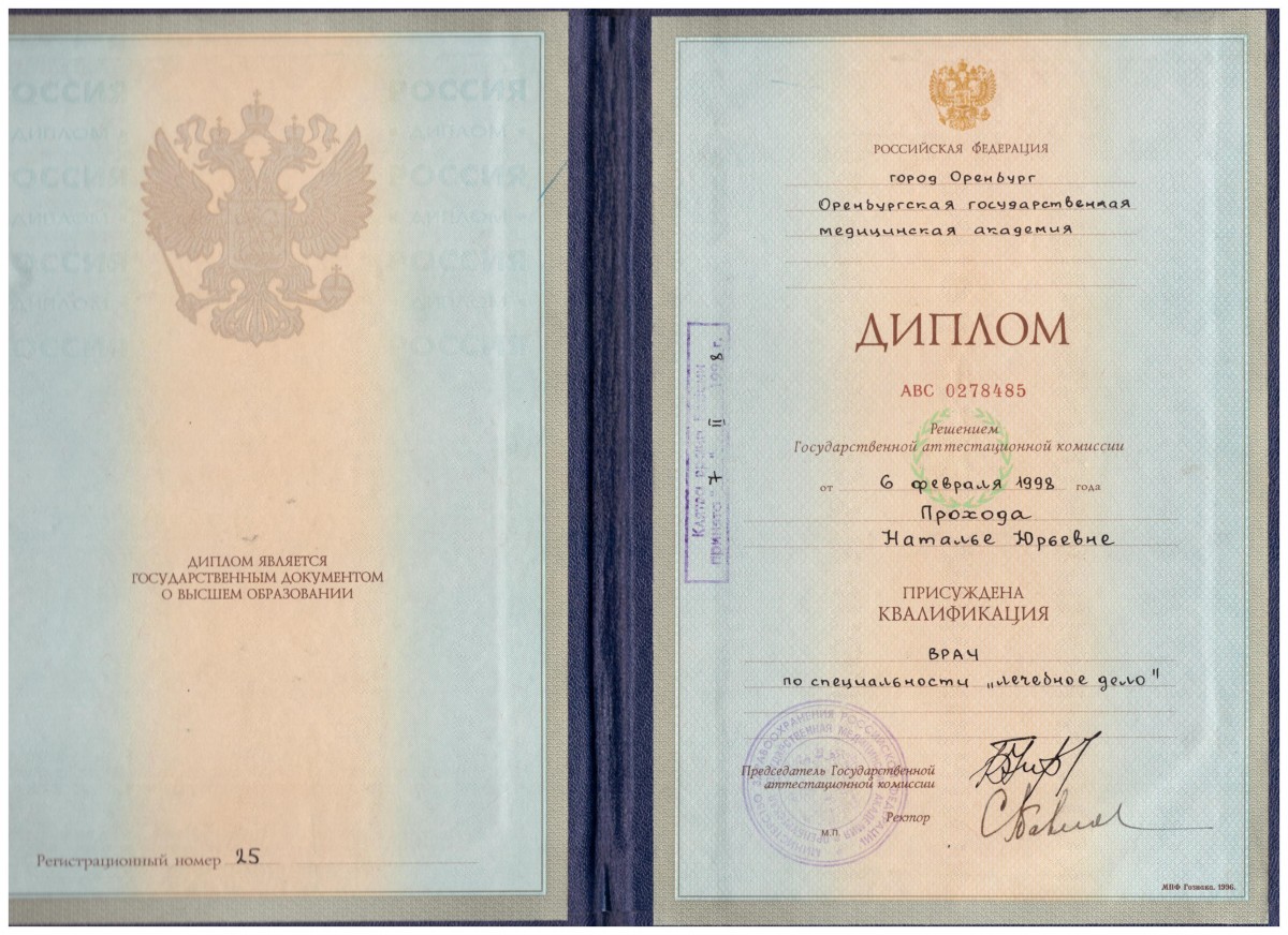 Оренбургская Государственная медицинская академия «Лечебное дело», Диплом №АВС 0278485