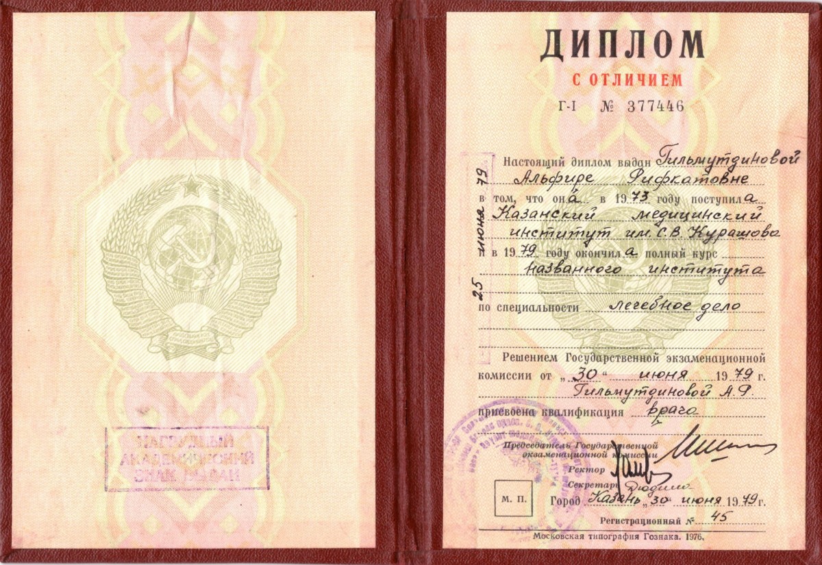 Казанский медицинский институт им. Курашова «Лечебное дело», диплом Г-I 377446